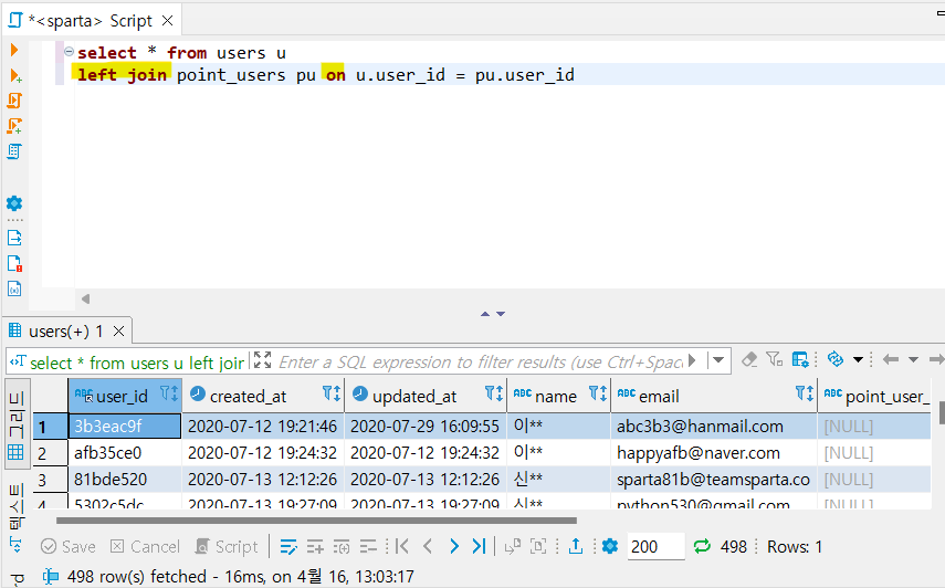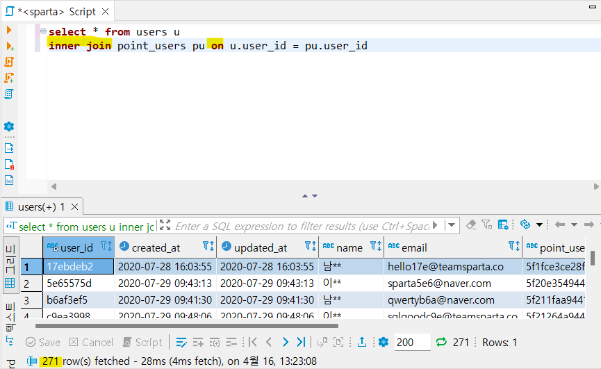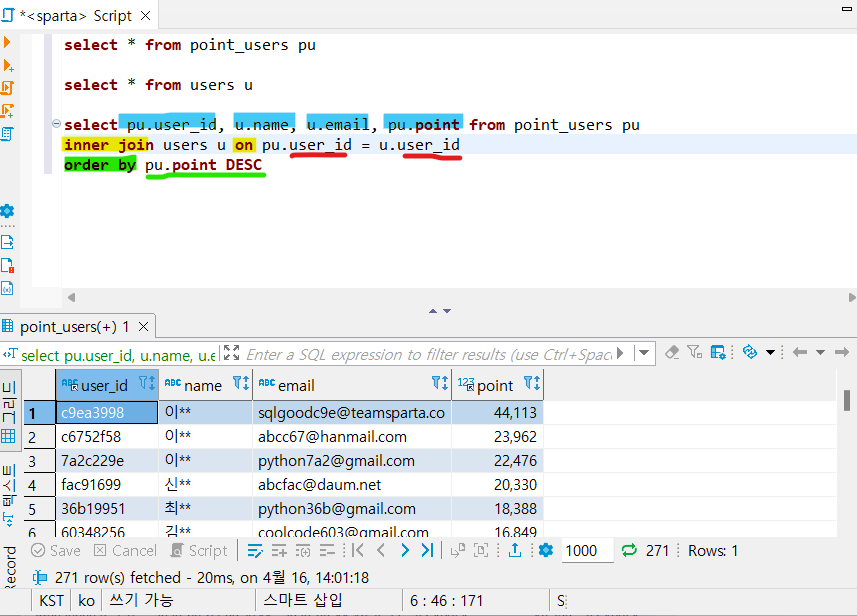 point_users 테이블에 users 테이블 연결해서 순서대로 정렬해보기